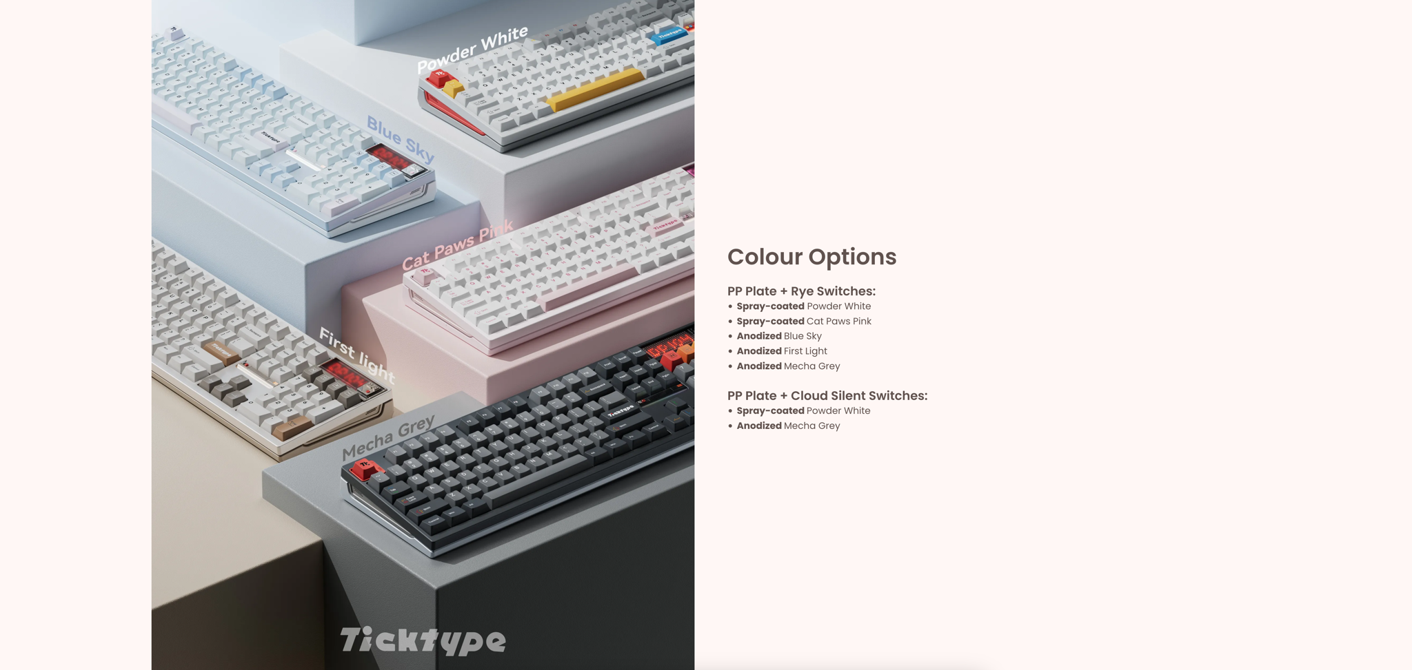 "Dựa trên di sản của các thương hiệu bàn phím tùy chỉnh cao cấp Owlab, Neo và Qwertykeys, mục tiêu của Ticktype là mang đến cho người tiêu dùng nhiều sản phẩm được thiết kế chính xác và lắp ráp sẵn, đồng thời tăng cường mức độ nhận diện và tác động của thương hiệu trên toàn thế giới.